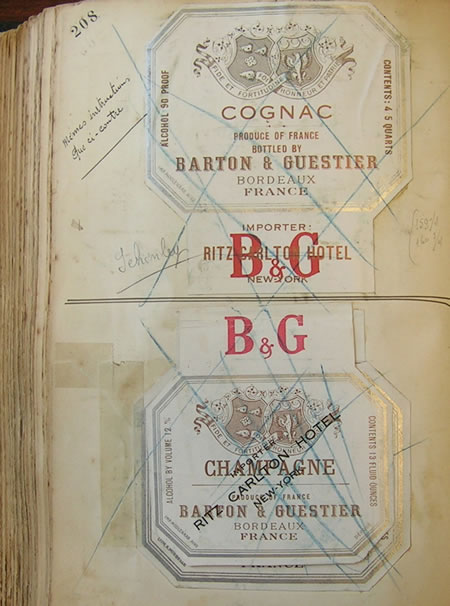 View with us some interesting labels, like B&G Cognac delivered to the New York Ritz Carlton Hotel, and also "promotional" material of our company used on the Andrea Doria!