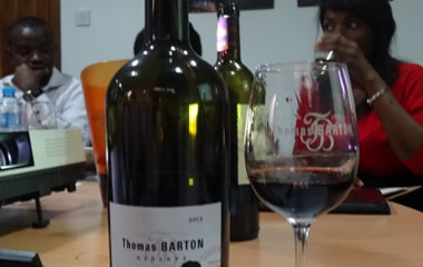 Villa Médici, one of the trendy places in Lagos, was the theatre for a fine wine dinner for VIP trade customers and press in presence of B&G’s Philippe Marion and Petra Frebault on July 8. Guests were welcomed with a glass of B&G Nectarose and the 5-course fine dinner was accompanied by B&G Réserve varietals, Thomas Barton Réserve wines and Château d’Arcins. |